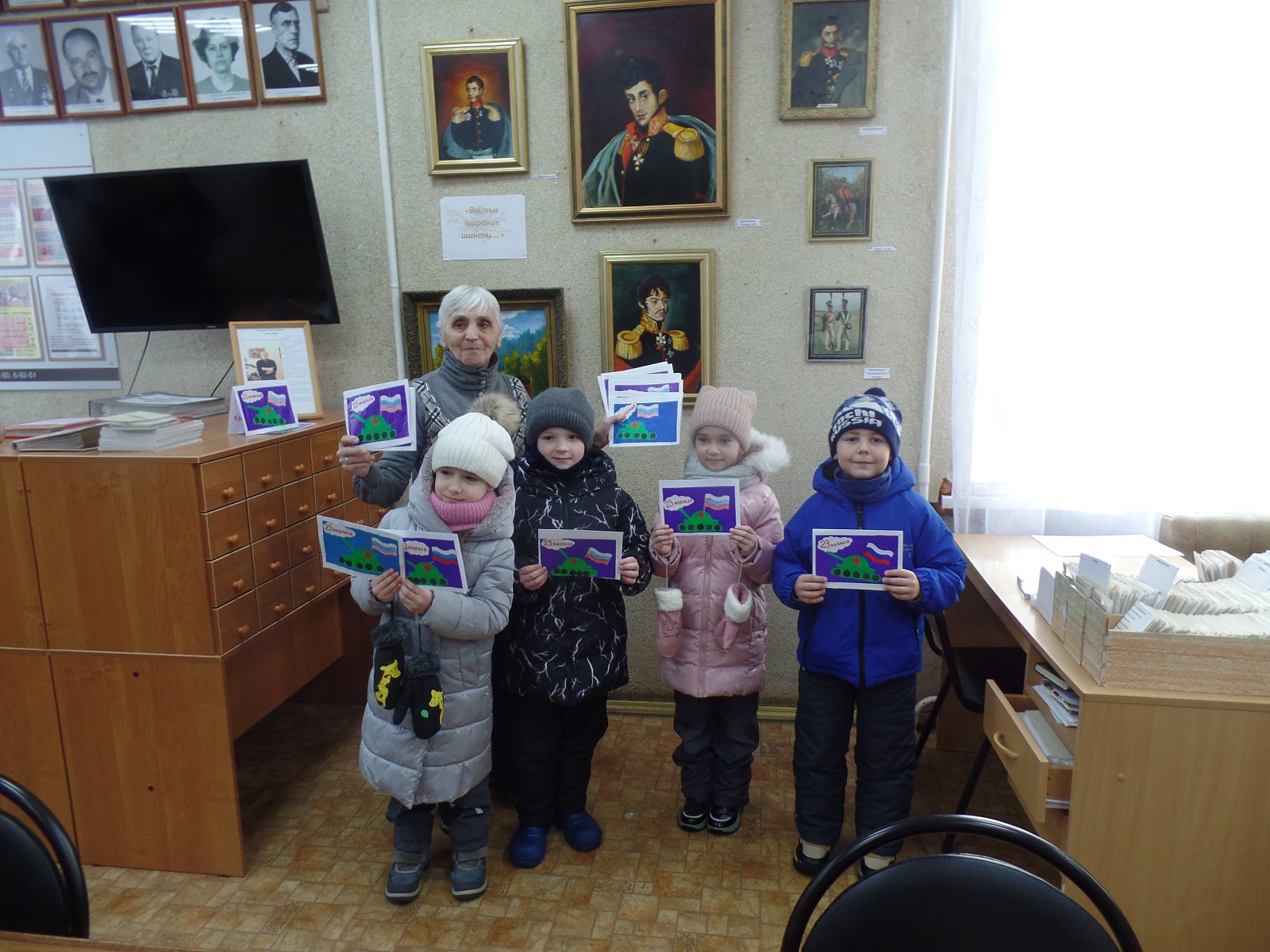 Сегодня делегация из ребят подготовительной группы передала открытки для наших парней-карабановцев на СВО с 23 февраля в общественную организацию «Дети войны» Валентине Григорьевне Шевченко. Мы очень хотим, чтобы наши парни в СВО из г. Карабаново были живы и здоровы и вернулись домой. Мы от всей души поздравляем их с 23 февраля и желаем скорейшей ПОБЕДЫ!