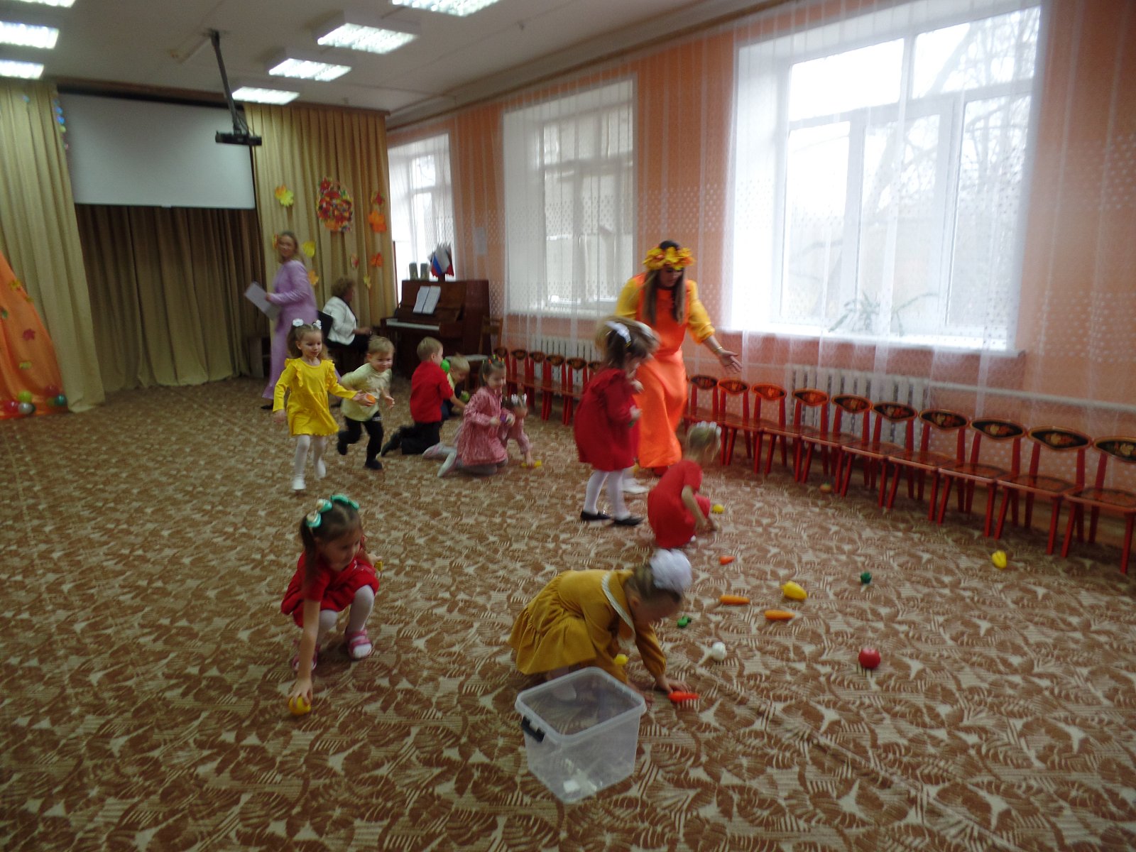 Сегодня в средней группе прошел утренник "Здравствуй, осень золотая!" Детишки танцевали, играли, читали стихотворения. В гости к ним приходила "Дождинка" и конечно Осень золотая. Праздник удался!