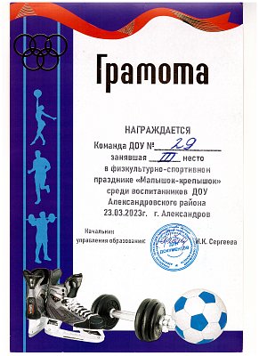 Мы призеры физкультурно-спортивного праздника "Малышок-крепышок" 2023 среди воспитанников ДОУ Александровского района